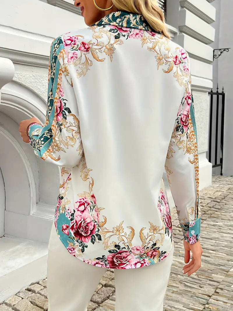 Çiçek Desenli Düğmeli Gömlek
